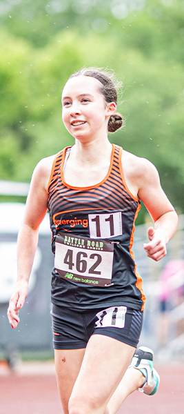 I started running around 5th grade while playing town soccer - a sport I started playing in Kindergarten. I found my love of running through soccer because my favorite position was midfield where I was constantly running up and down the field. I then decided to start running a few races- a couple 5K’s and 10K’s and also a half marathon, which is when I absolutely fell in love with the sport! Running has motivated me to be a better person and athlete everyday and I also love it because of the people I have met who love the sport just like I do. I joined Emerging Elites to learn some new tips and techniques, to improve as a runner, and to train with competitive athletes who enjoy running. In my free time, I enjoy Irish Dancing, spending times with my friends and family, and making bracelets and crafts.