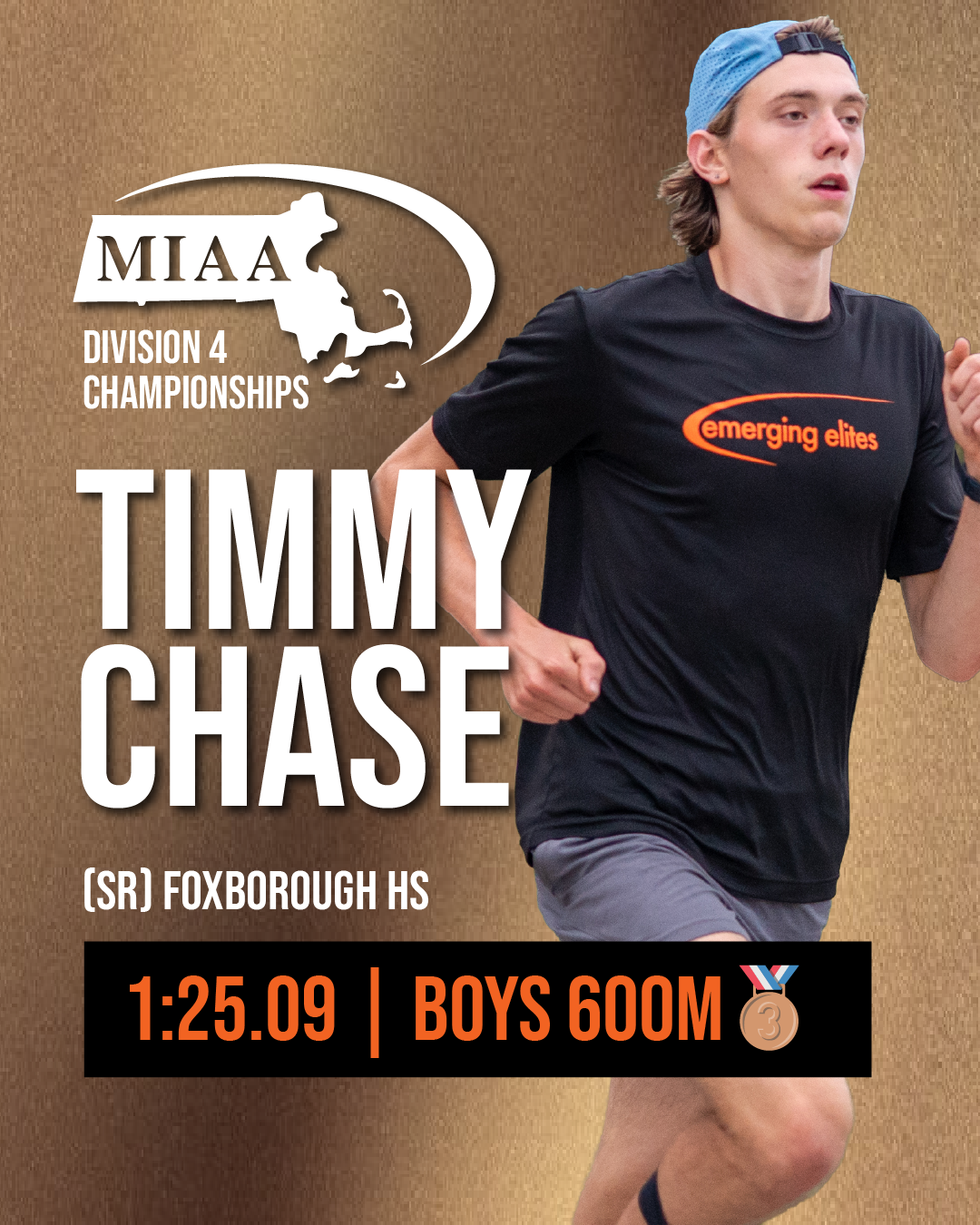 Growing up I played several different sports. I played hockey from when I was four years old all the way up to my freshman year of high school. My first real running experience was freshman year cross county where I learned that I was a pretty good runner as I was the fourth fastest person in my team and fastest freshman in a decade, I planned on playing hockey but after my cross county season I changed my mind and haven’t looked back. I was introduced to Emerging Elites by my former captain who told me how it helped him improve by over six minutes and how it could help me take running to the next level. In my free time, I enjoy playing basketball, ice skating, and swimming.